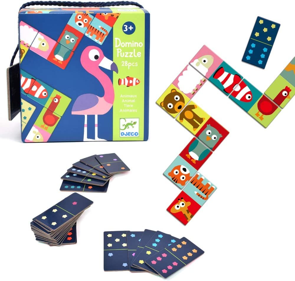O lado da imagem combina o clássico jogo de dominó com um quebra-cabeça: em vez de encontrar 2 quadrados idênticos, os jogadores precisarão terminar os animais.