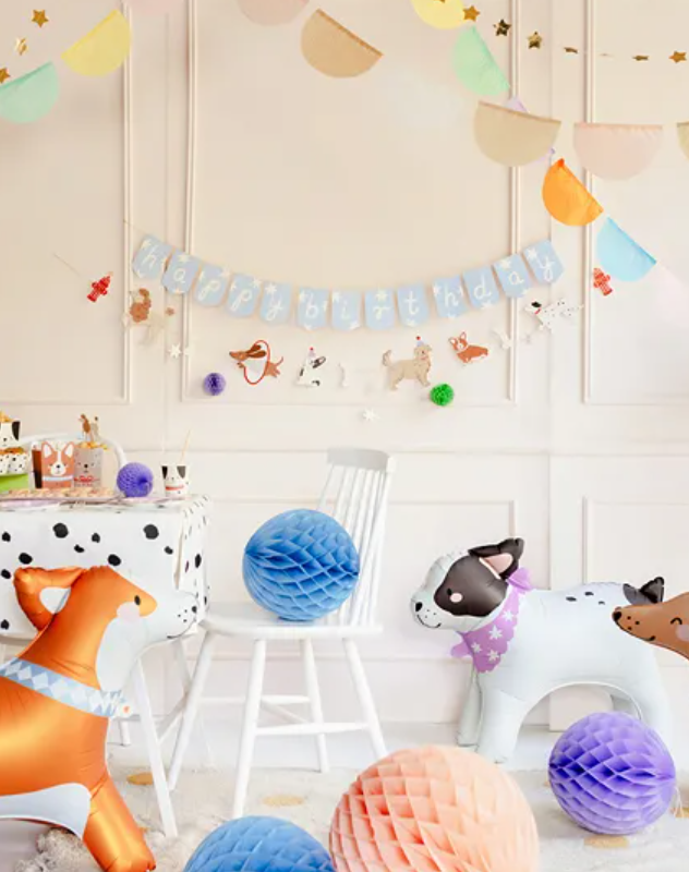Home Cães Faixa Happy Birthday Cães Faixa Happy Birthday Cães 6,90 € Desconto de %. Comprar Contactar Adicionar à wishlist Faixa de papel Happy Birthday Cães, mistura de cores, comprimento 210 cm. O produto está pronto para uso após a remoção da embalagem. O conjunto consiste em 2 faixas separadas: o texto "Happy Birthday" e uma mistura de cães e padrões, ambos costurados com barbante dourado. Marca Party deco Partilhar