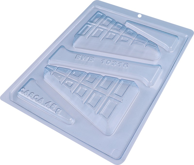 Forma especial com silicone (3 partes), ideal para produção de chocolates com muito mais praticidade e precisão. Possui uma “marquinha” indicando a quantidade necessária de chocolate, levando para geladeira uma única vez. Ela proporciona uma casca uniforme e um acabamento perfeito sempre com o mesmo peso.