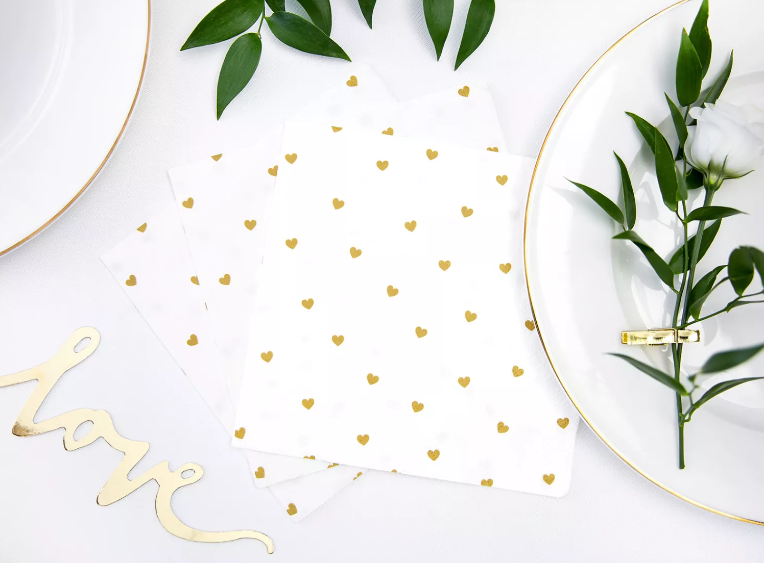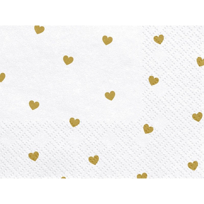 Guardanapos branco com corações dourados