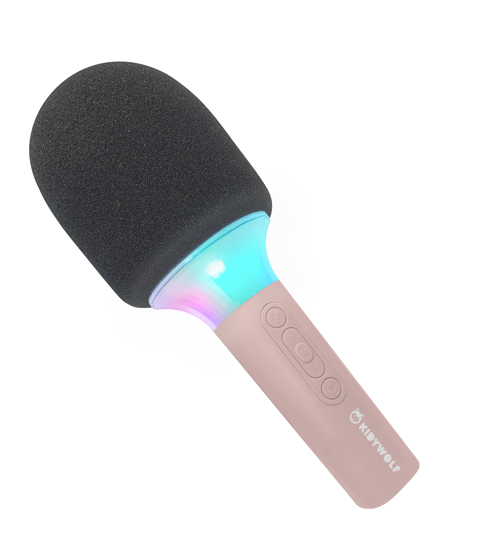 O microfone acende com um LED multicolorido.