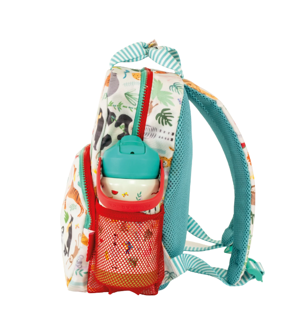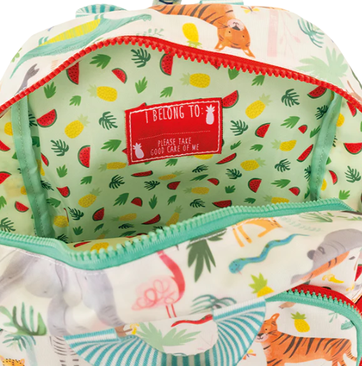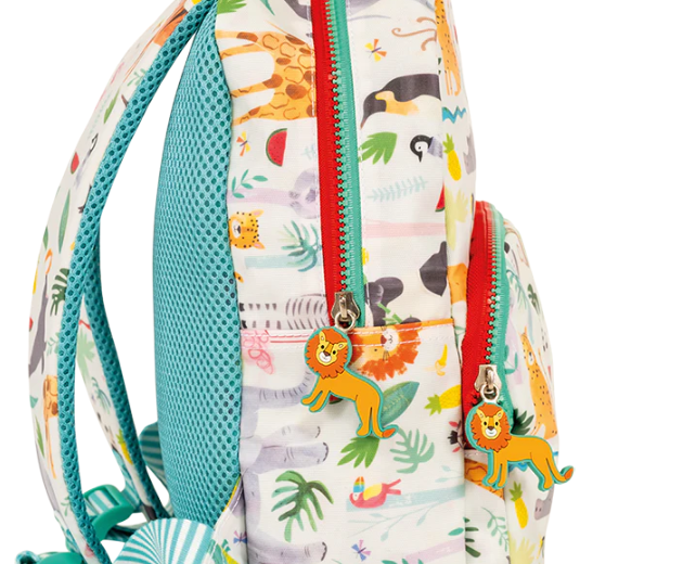 Tem um prático bolso frontal, um porta-garrafas, 2 alças de zíper decoradas, ótimas para as crianças levarem almoços e pequenos itens para a escola ou em um passeio !