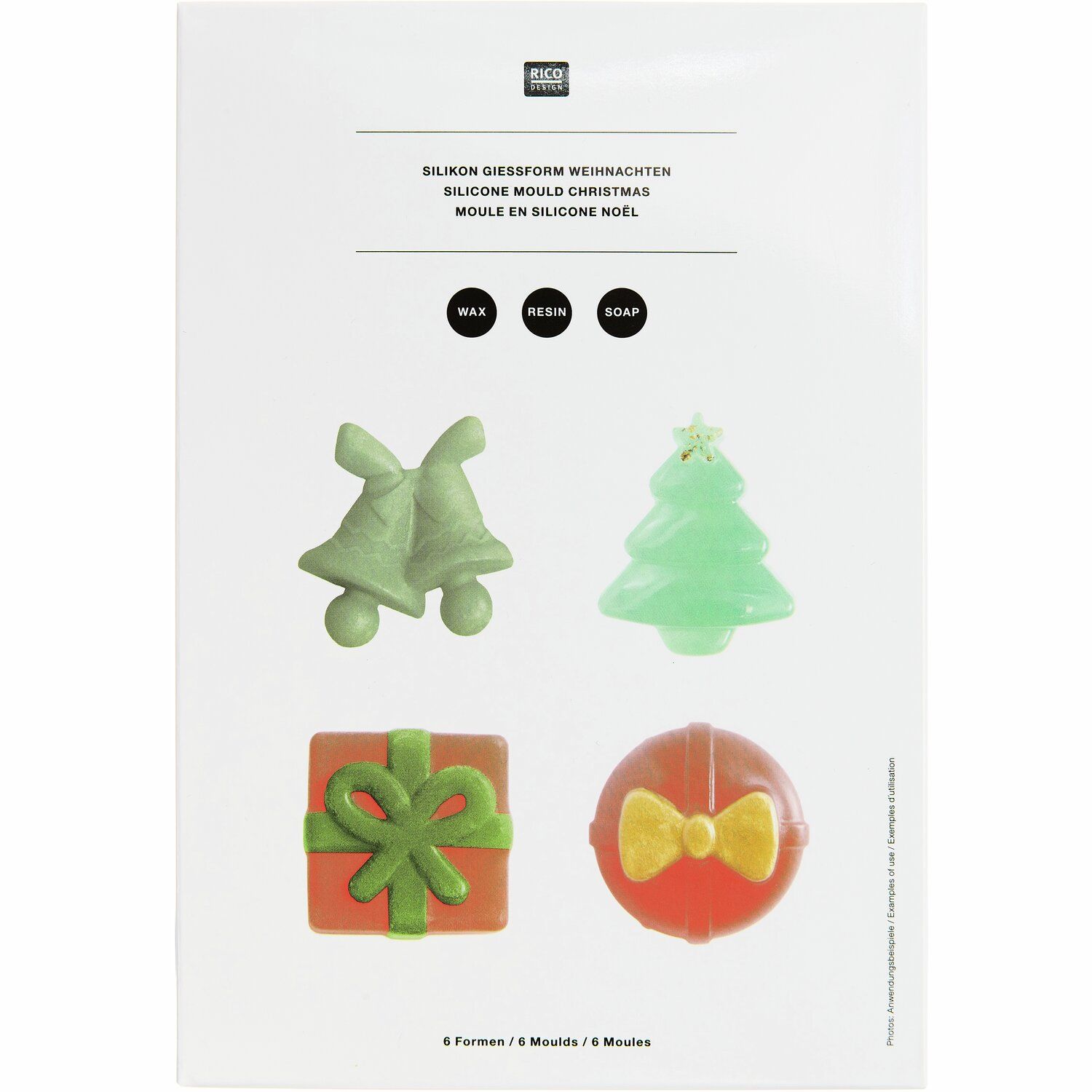 Este molde de silicone de alta qualidade, com seis designs natalinos diferentes, é perfeito para projetos criativos DIY com resina, sabão ou cera.