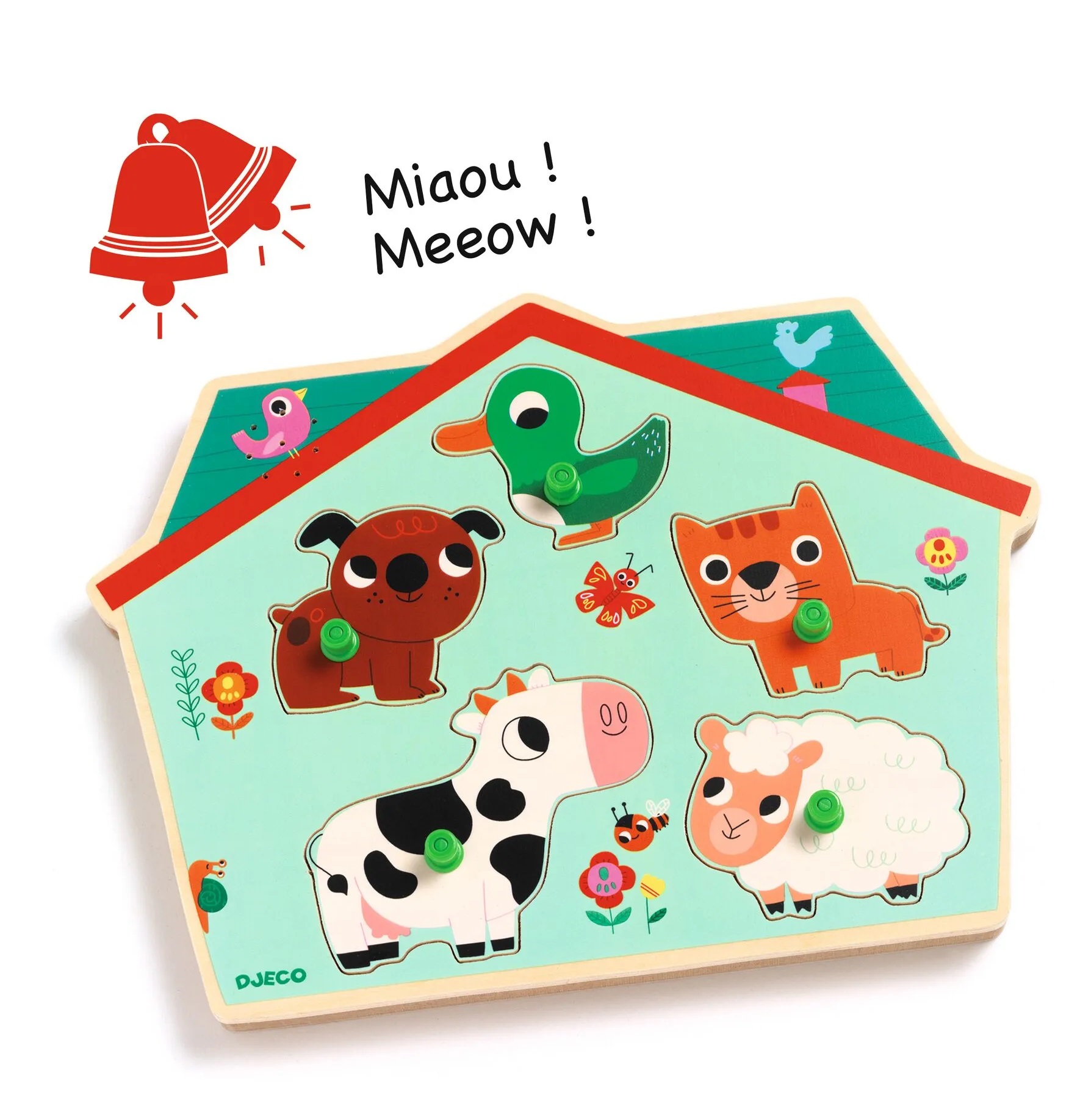 Ensina as crianças a reconhecerem os sons dos animais e a relação entre causa e efeito.