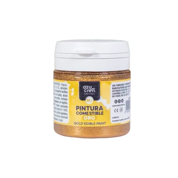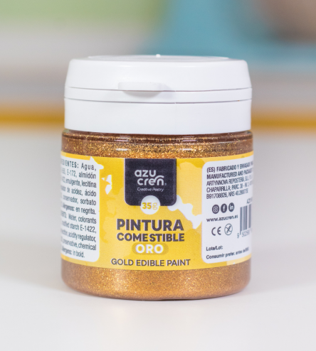 Home Corantes gel Tinta comestível ouro Tinta comestível ouro SKU: 9502568688573 6,80 € Desconto de %. O produto estará disponível para compra brevemente. Adicionar à wishlist Tinta comestível para pinturaCor: douradoMarca: AzucarenEmbalagem: 35g Tinta fantástica, perfeita para pintar sobre pasta de açúcar ou glacê real. Muito fácil de usar, basta agitar o frasco e aplicar a tinta com pincel ou esponja. A tinta é comestível e seca muito rapidamente na decoração. Ingredientes: água, corante (óxido de ferro E172, amarelo quinolina E104*), amido de milho, conservante E202, ácido (ácido cítrico E330), aroma. Marca azucren Características Partilhar