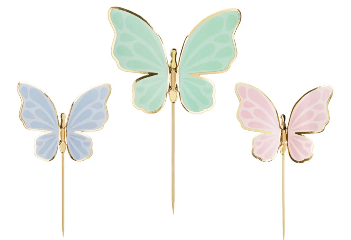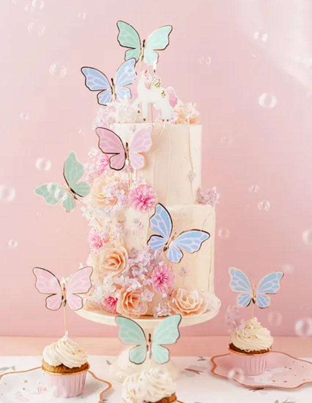 Home Unicórnio Topo de bolo Borboletas Topo de bolo Borboletas SKU: 5904555058804 2,90 € Desconto de %. Comprar Contactar Adicionar à wishlist Topos de bolo Borboletas nas cores azul, verde e rosa. As dimensões das peças individuais são 9 x 6,5 cm. O conjunto inclui 9 formas de borboleta e 9 palitos. Este é um produto de automontagem.(1 pacote / 9 peças) Marca Party deco Características Partilhar