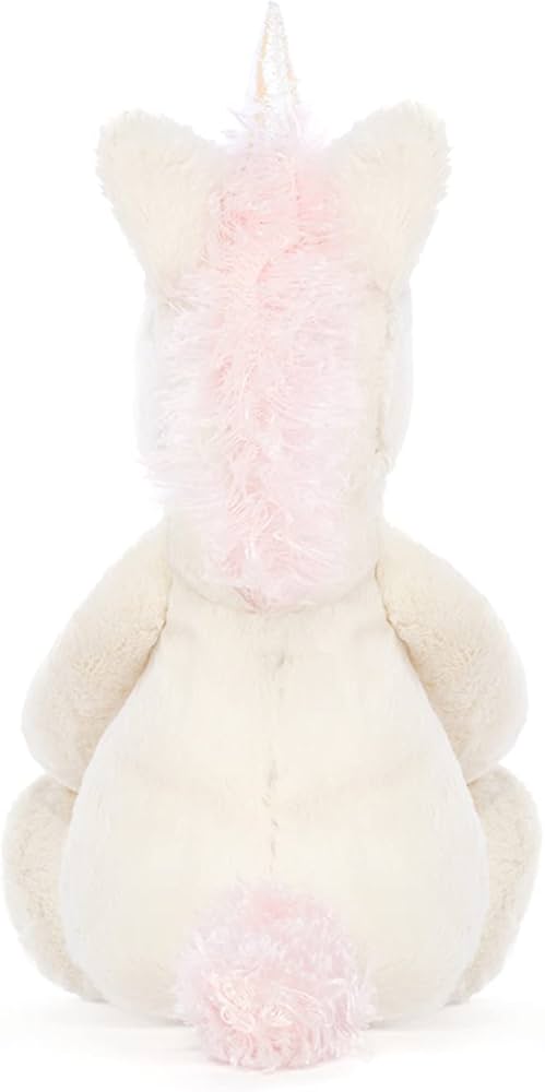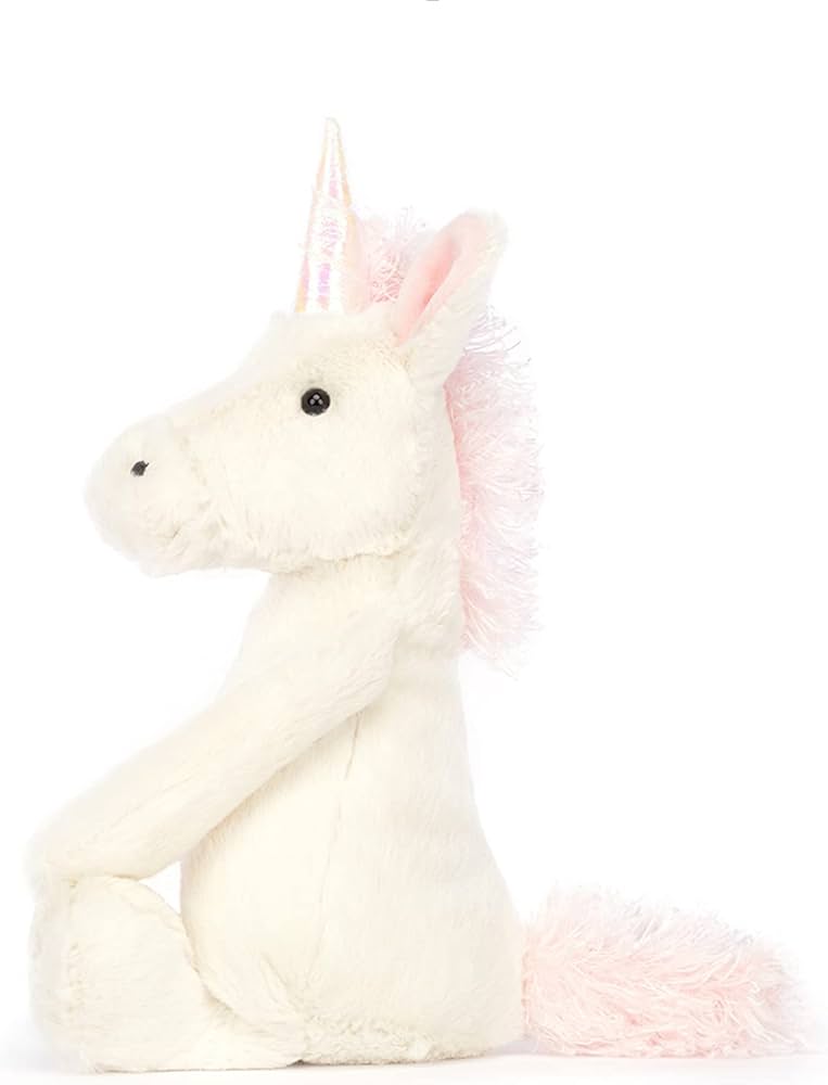 Este brinquedo macio Jellycat Unicorn da coleção bashful é magicamente lindo com seu chifre brilhante. O unicórnio também tem uma linda crina rosa e uma cauda rosa.